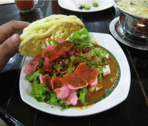 Siram dengan kuah bumbu kacang yang sudah dingin.