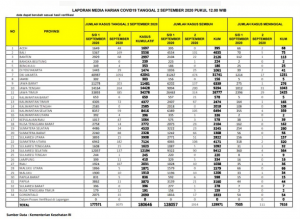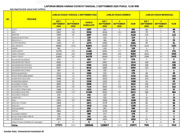 Dan berikut ini adalah data terakhir per tanggal 2 september 2020 untuk wilayah nusantara